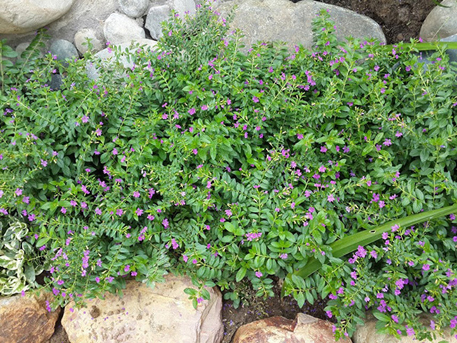Cẩm tú mai là loại cây bụi nhỏ, cao tầm từ 20 – 60 cm. Nếu trồng lâu năm, cây có thể đạt từ 90cm – 100cm. Cây cẩm tú mai có thân cây nhỏ, màu xanh mướt của thân và có lá mọc đối nhau, đi kèm với màu tím bắt mắt của những bông hoa. Cây có bụi thấp, mọc khỏe, nảy chồi nhiều. Cụm hoa ngắn và có màu tím, gồm 6 cánh hoa. Cây cẩm tú mai có quả, nhưng rất hiếm vì thế ít người thấy được loại quả của cây này.